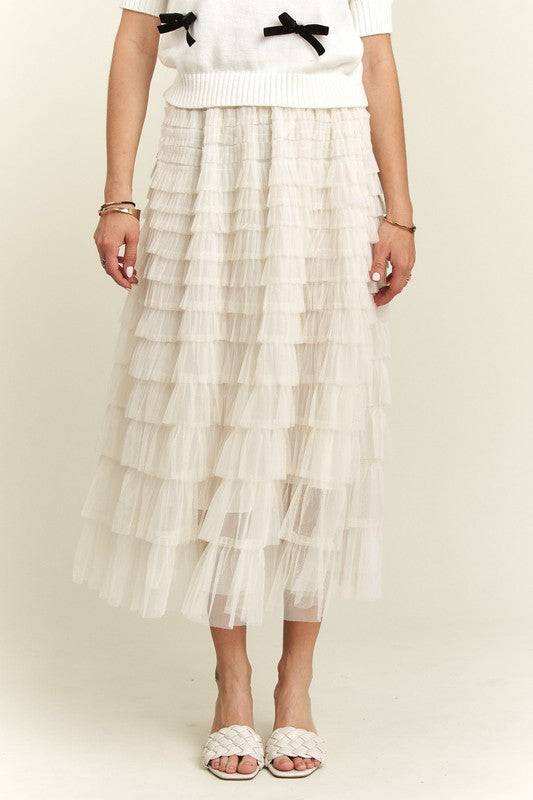 ADORA Elastic Waist Layered Mesh Midi Skirt