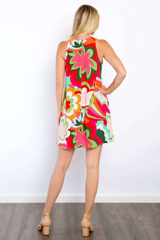 Be Stage Full Size Floral Sleeveless Mini Dress with Pockets