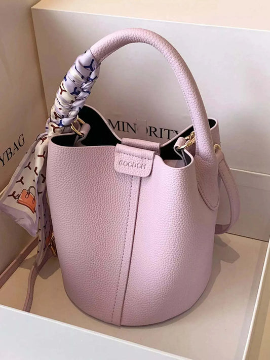 Bucket Crossbody Bag Features a Scarf Accent