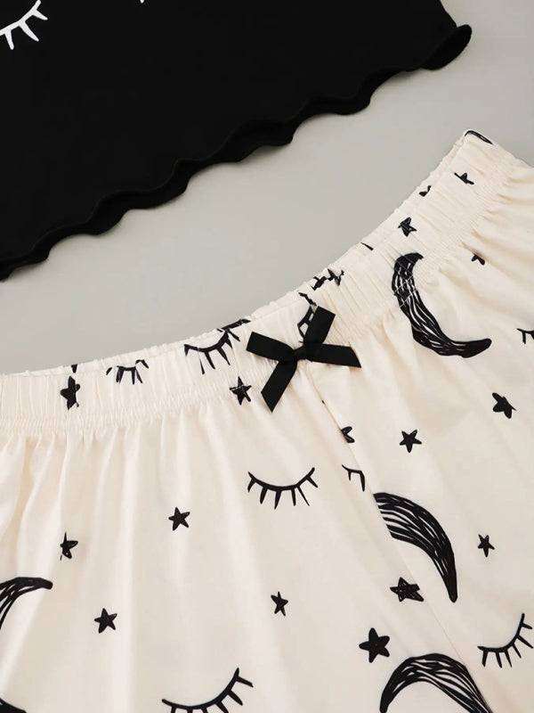Eyelash Print Camisole Top Star Moon Shorts Loungewear Set
