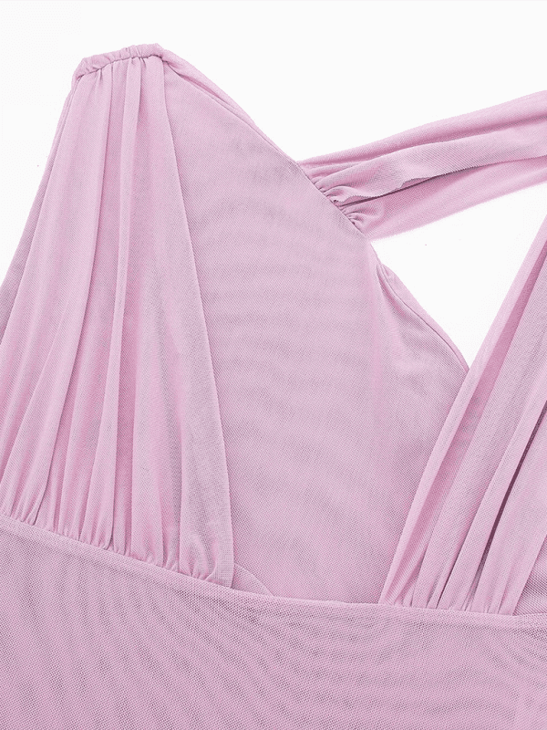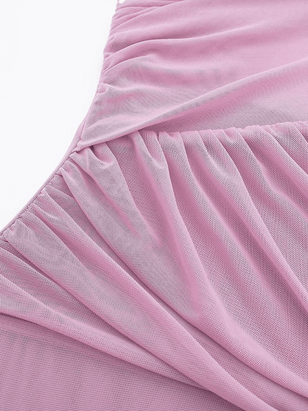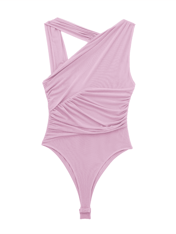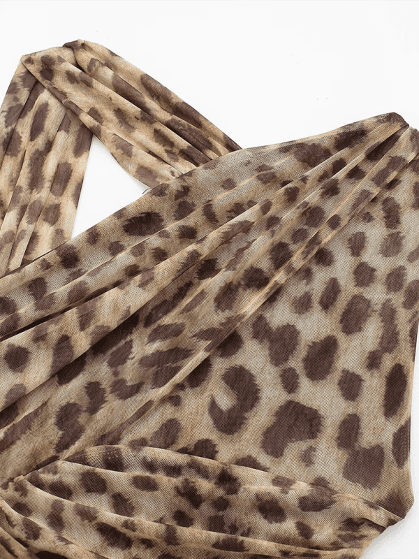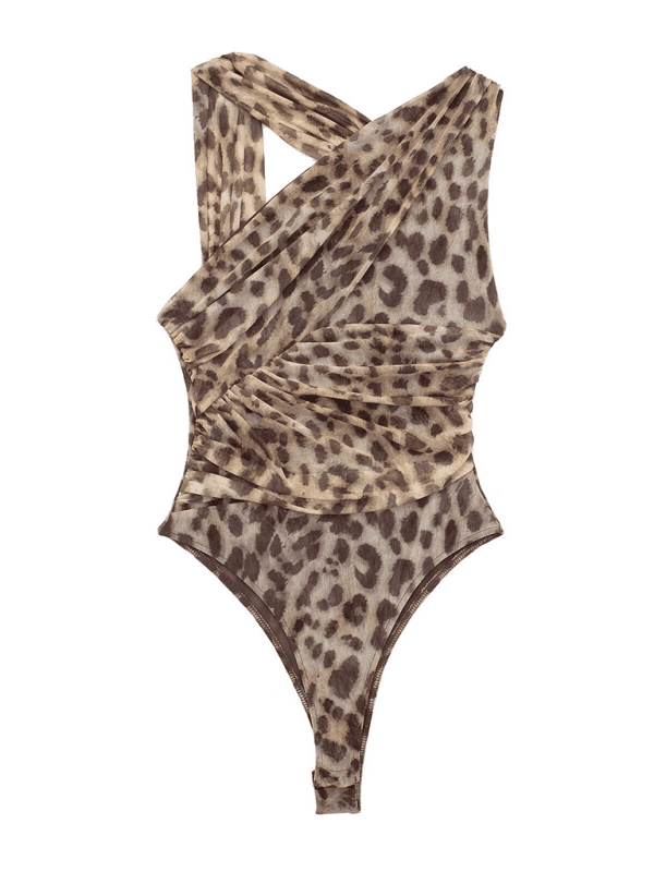 New Asymmetric Pleated Leopard-Print Tulle Bodysuit