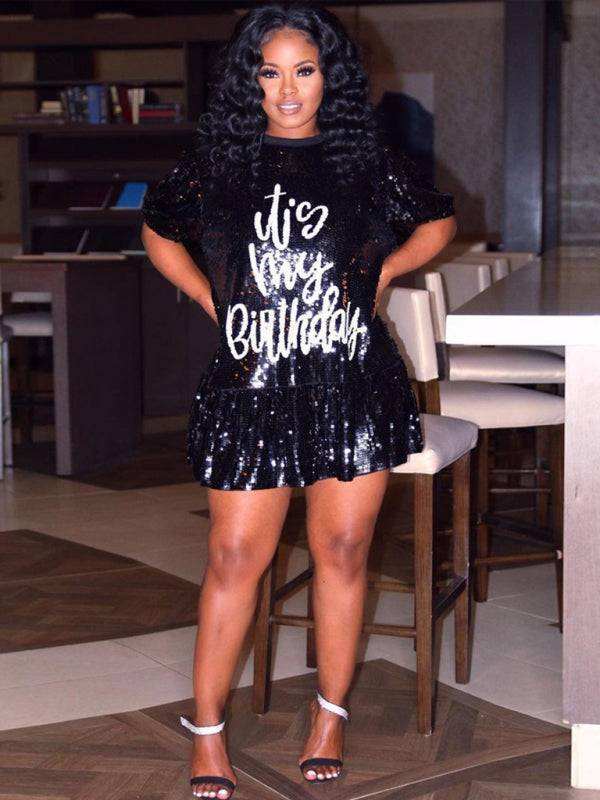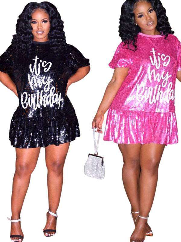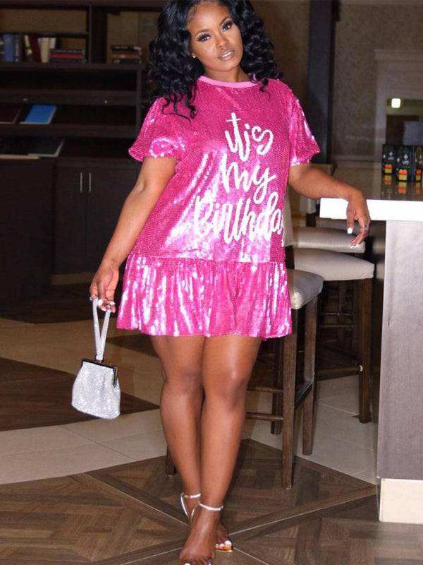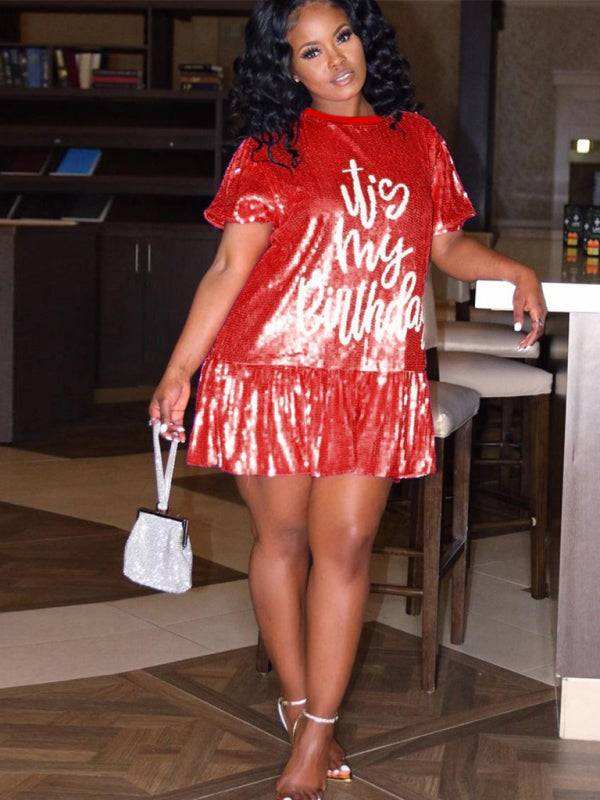 New fashion loose casual round neck short sleeve lotus skirt dress