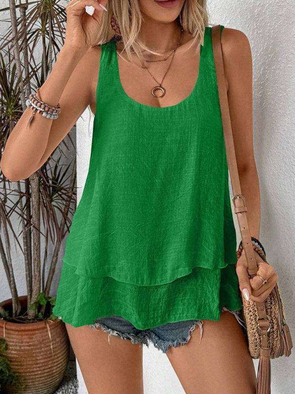 New vest tube top sling sleeveless double layer cake tail T-shirt top
