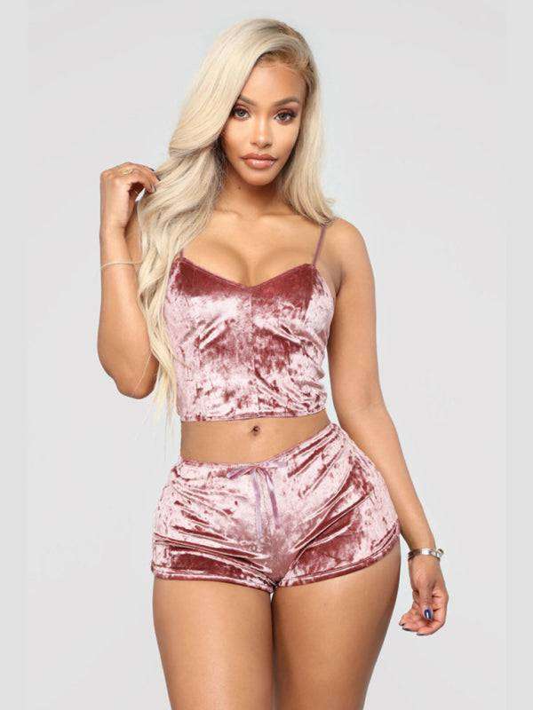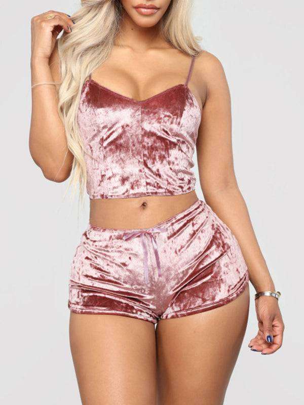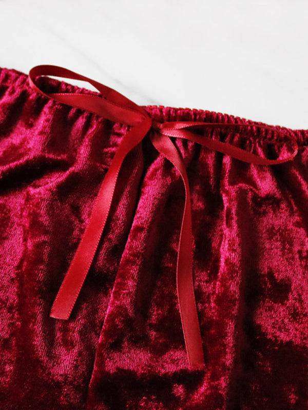 Sexy Velvet V-neck Underwear Two-Piece Set Sexy Lingerie Homewear Set