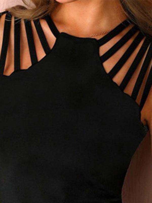 Solid color shoulder hollow sexy knitted halter neck vest women's top