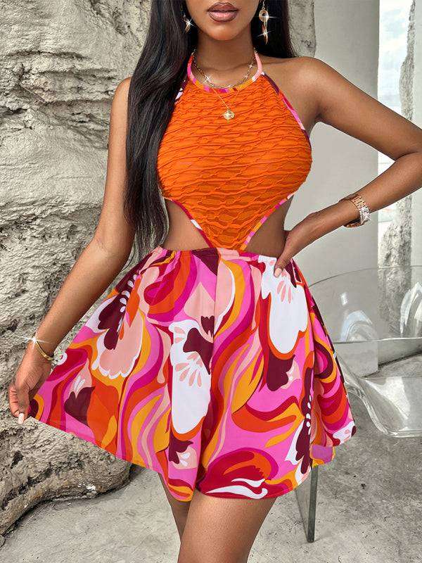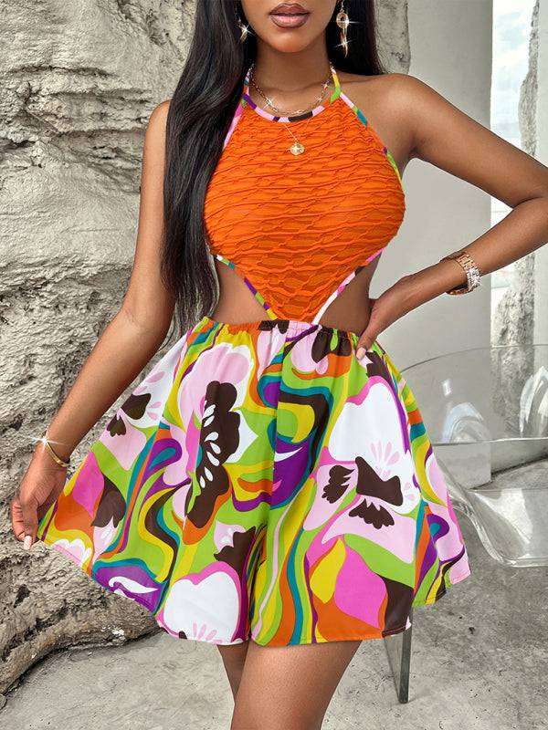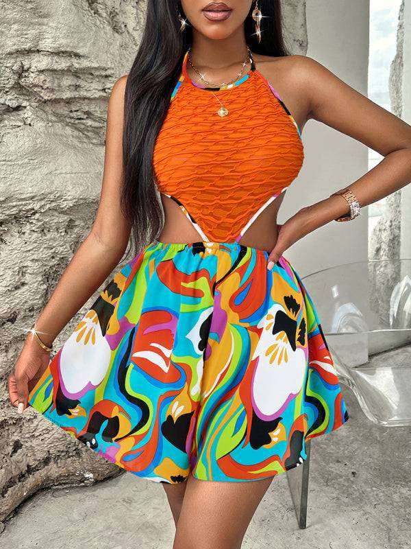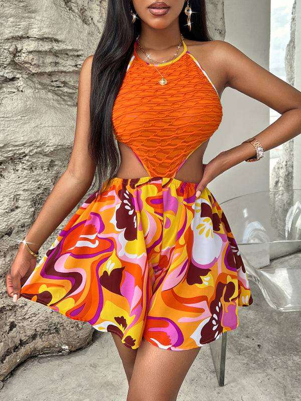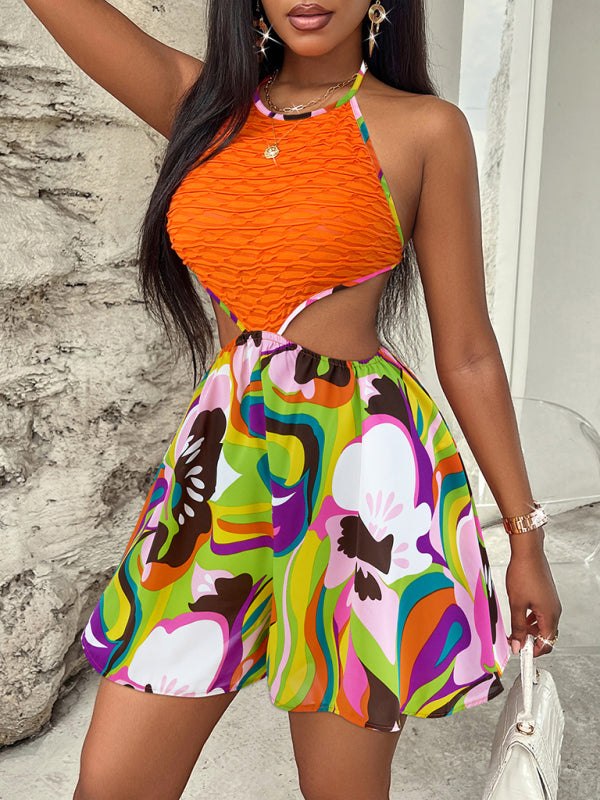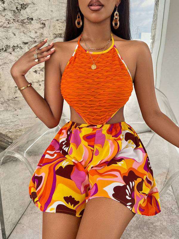 Summer Hollow Bright Color Halter Jumpsuit