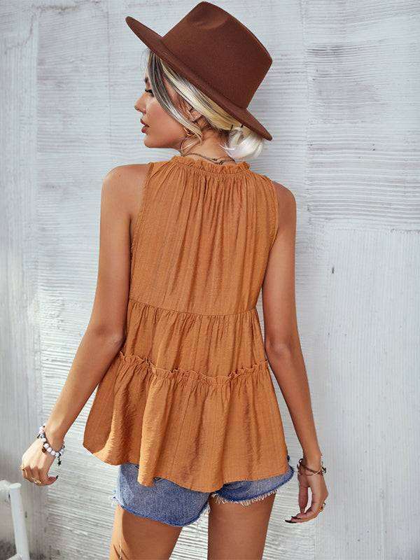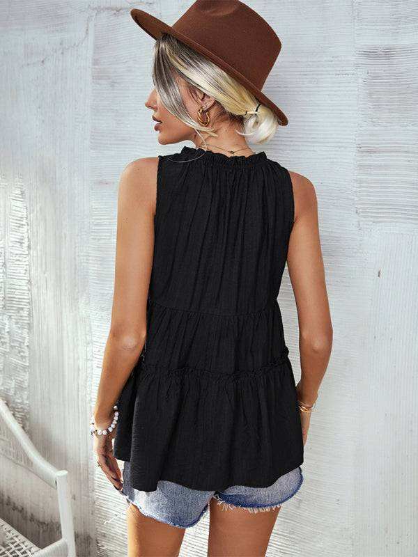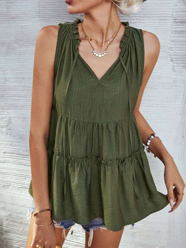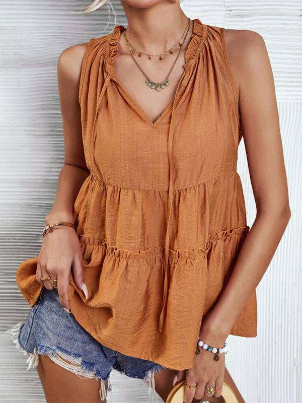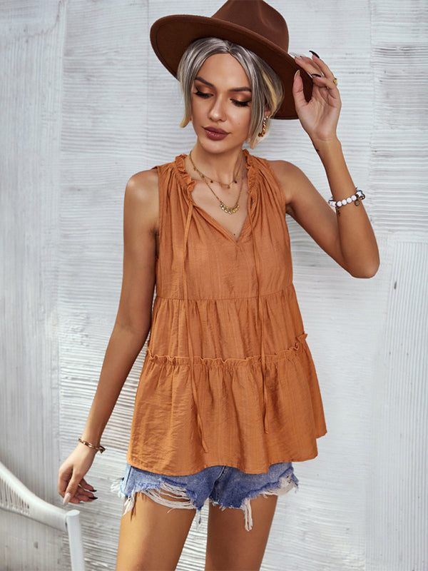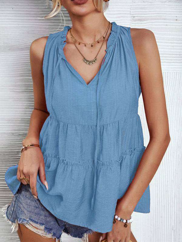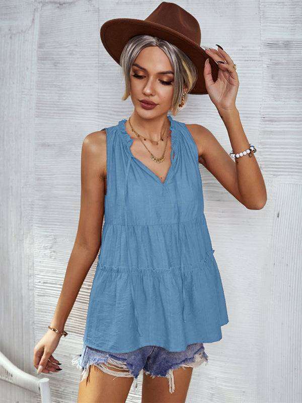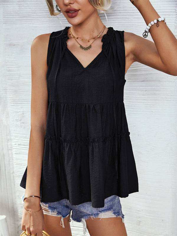 Women's Woven V-Neck Stitching A-Shape Vest